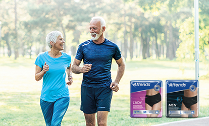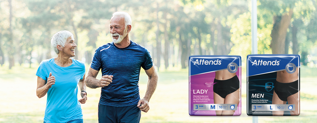 Mit den Attends Lady Discreet Underwear und Attends Men Protective Underwear können Sie Ihren Alltag aktiv gestalten. Dank der überlegenen Passform und hohem Tragekomfort fühlt sich die weichen Einmalhosen wie echte Unterwäsche an. Die fein gewebten Elastikfäden sorgen für anschmiegsamen Sitz – ohne Verrutschen. Der leistungsstarker Saugkern schützt vor Auslaufen und Geruch. So können Sie sich sicher fühlen – auch wenn Sie unterwegs sind.